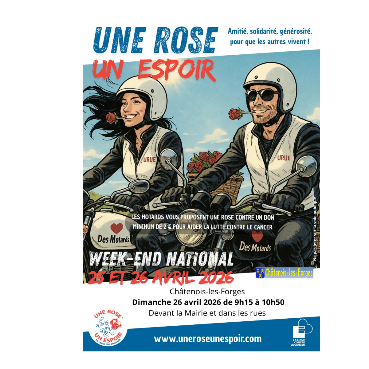 Comme chaque année, des motards seront à Châtenois-les-Forges pour offrir des roses contre un don minimum de 2 euros.